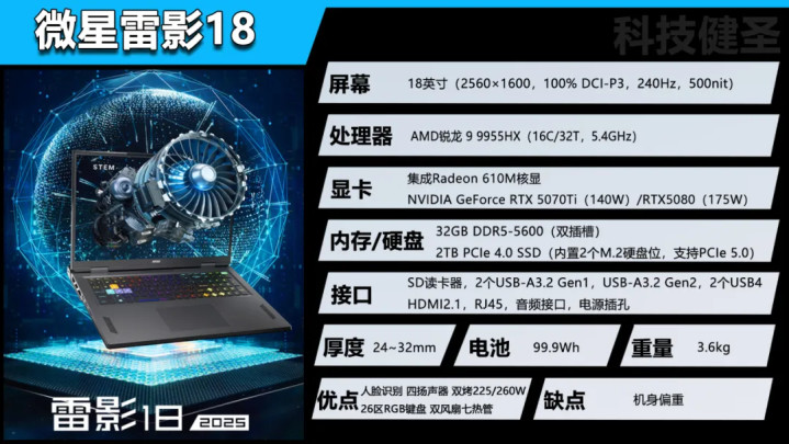 2025年,微星让泰坦16扮演普及先锋的角色,先后将RTX5080和RTX5070Ti的价格卖到了12999元和9999元。而雷影18在更换新模具后,定位也随之拔高,不再面向最主流的消费人群。因此如果你追求性价比,今年的泰坦16可能才是近期微星品牌的唯一之选。