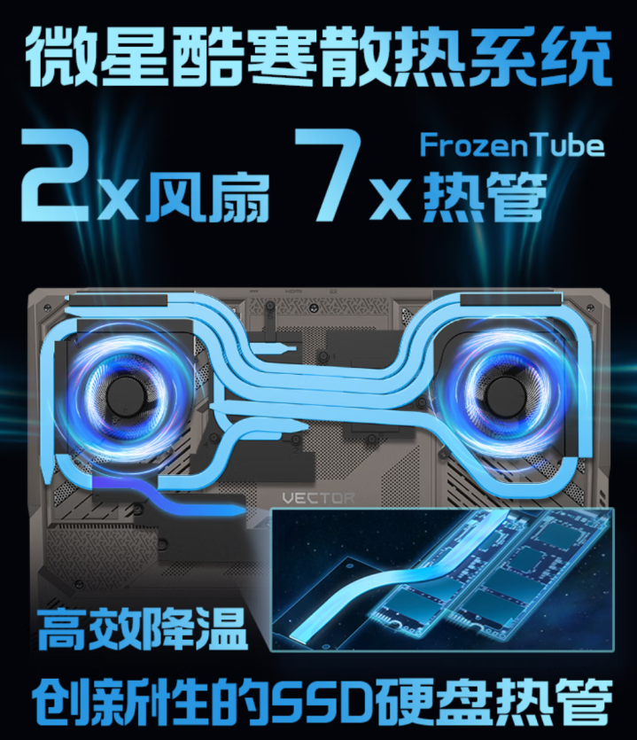 两个配置均标配32GB内存和2TB PCIe 4.0 SSD,内置双内存插槽和双2280的M.2硬盘位,支持PCIe 5.0 SSD。从宣传来看,两种显卡的配置都配备双风扇七热管,搭配400瓦电源适配器,只是RTX5080的双烤功耗可达260瓦,而RTX5070 Ti版则是225瓦。